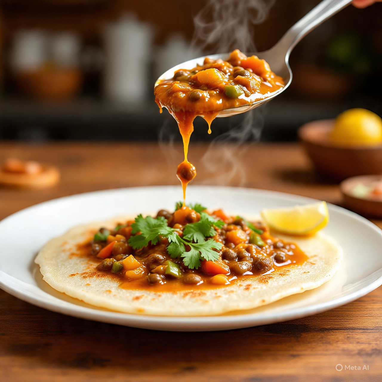 This dish features soft, fluffy rice pancakes (appam) paired with a rich, flavourful vegetable or meat stew cooked in coconut milk. The combination of the light, spongy appam and the creamy, aromatic stew creates a perfect harmony of textures and flavours. Enjoy this wholesome, gluten-free meal that is both nutritious and delicious, offering a taste of authentic Kerala cuisine.